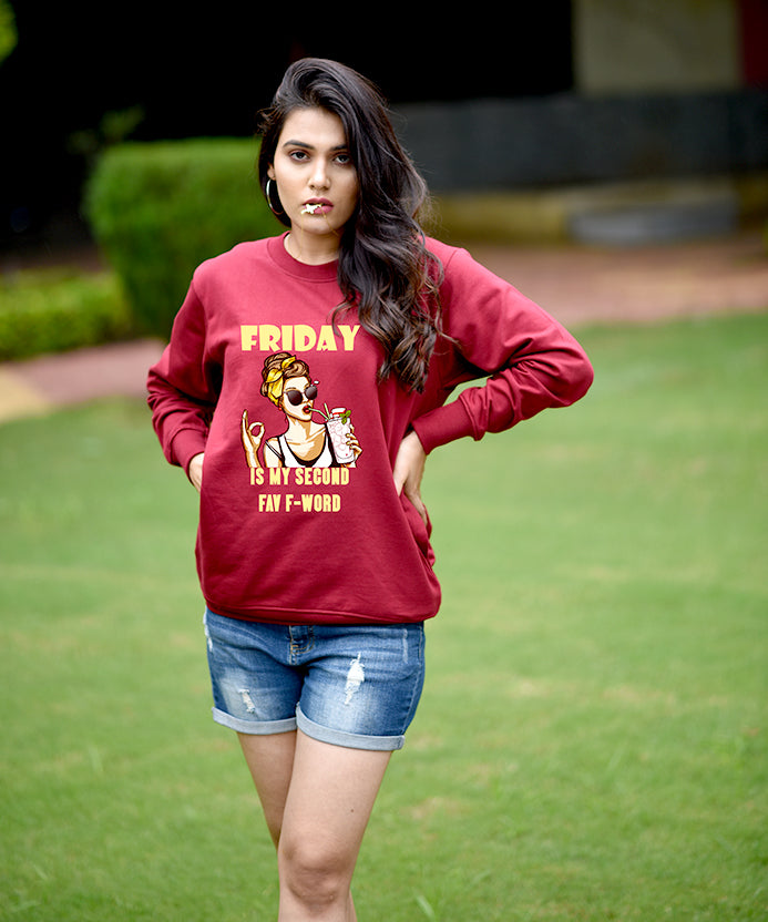 This Bloopers sweatshirt is the perfect winter addition to your cozy wardrobe. Wear this maroon piece with a classic T-shirt and dark wash jeans for a casual lunch outfit.