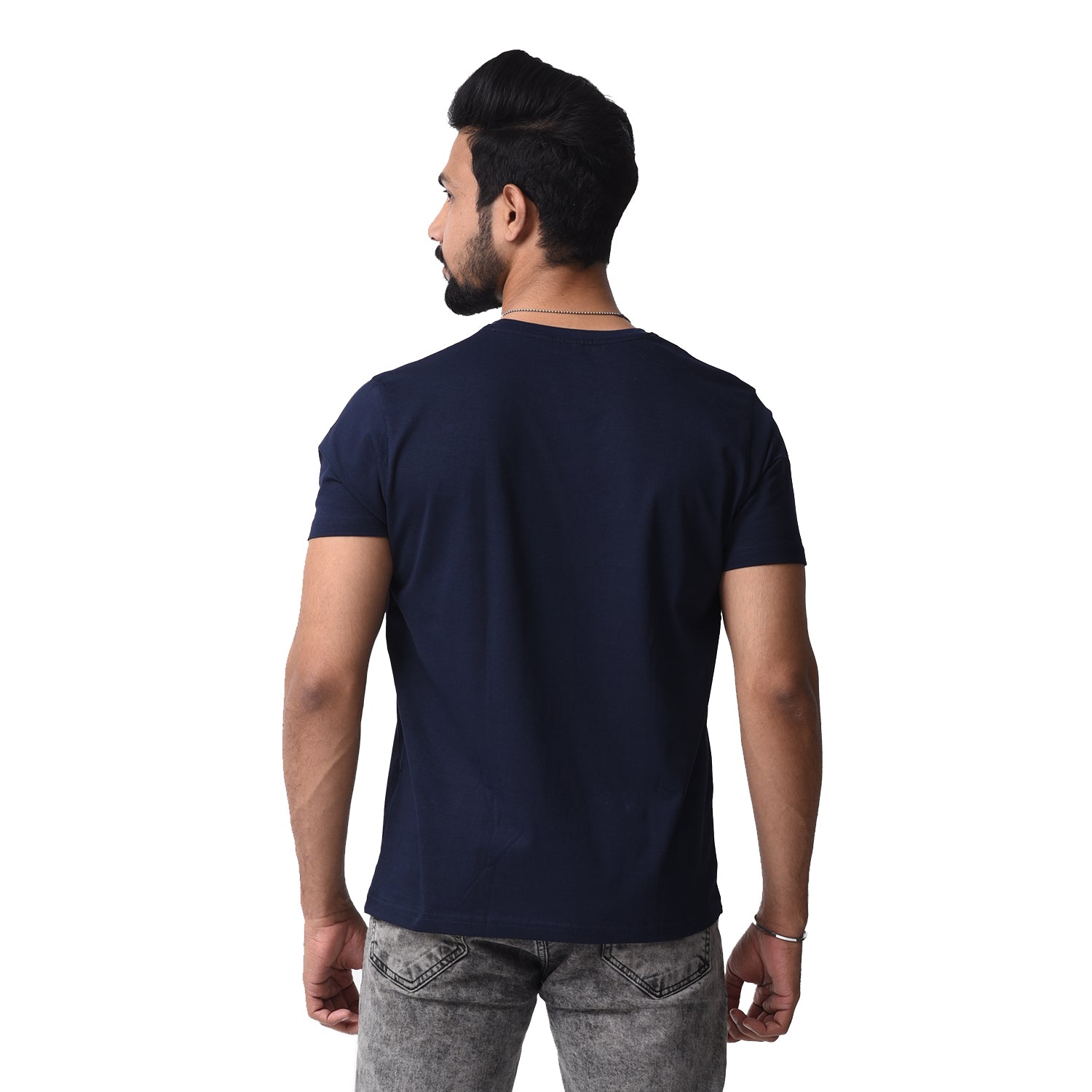 Navy Blue printed T-shirt , has a round neck and short sleeves