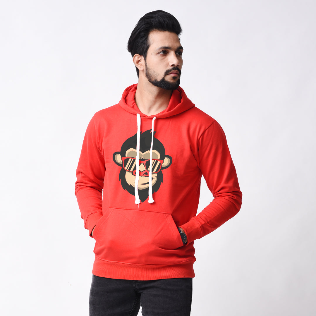 Red hoodie, has a hood, both side pocket, long sleeves, straight hem.