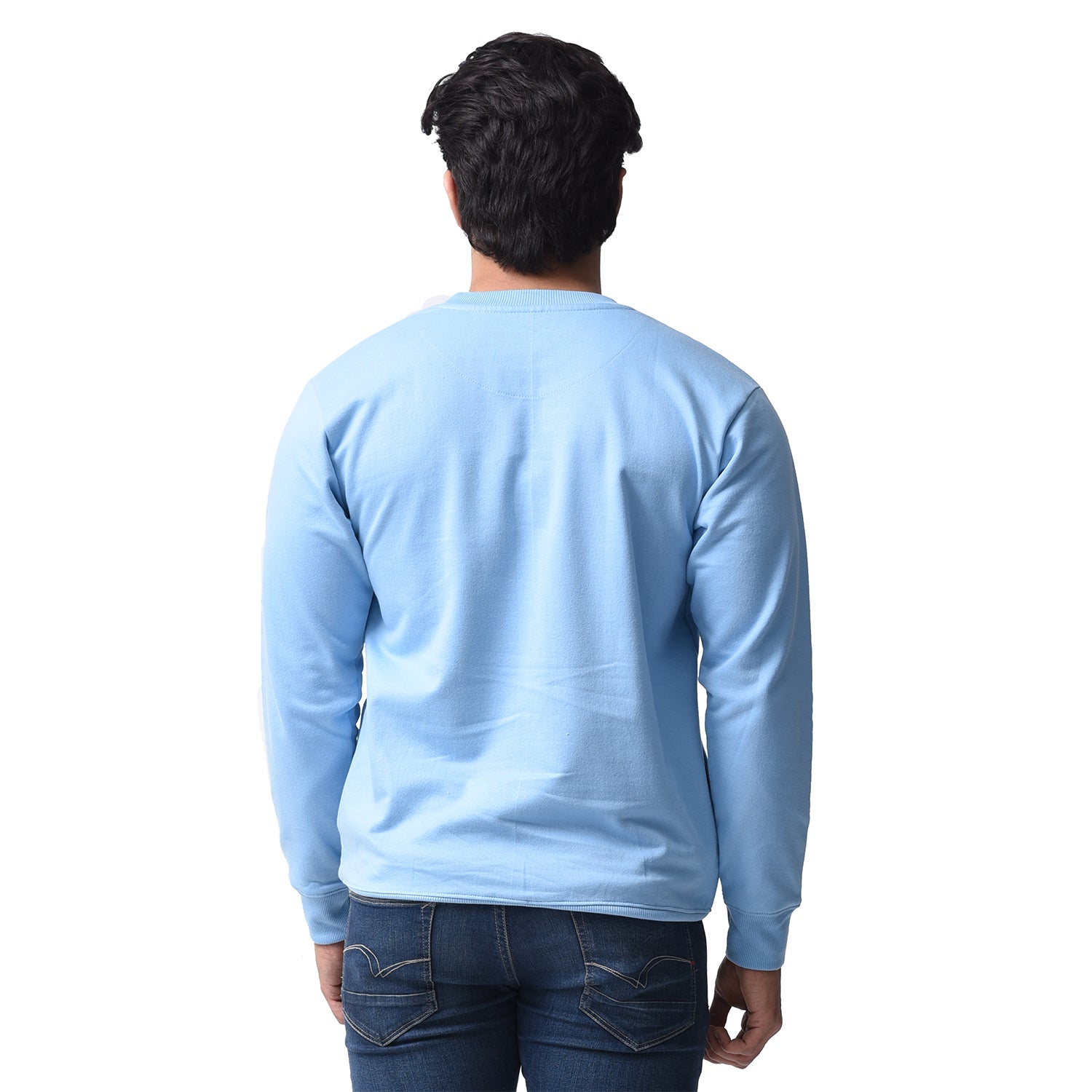 Sky blue solid sweatshirt, both side pocket, long sleeves, straight hem.