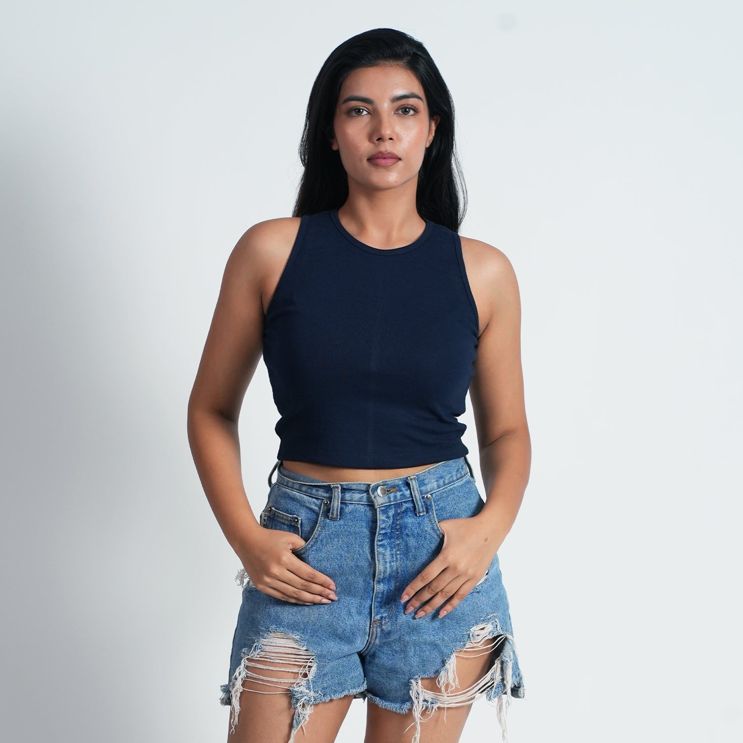 Women Sleeve less Navy blue Summer Wear Tank Top